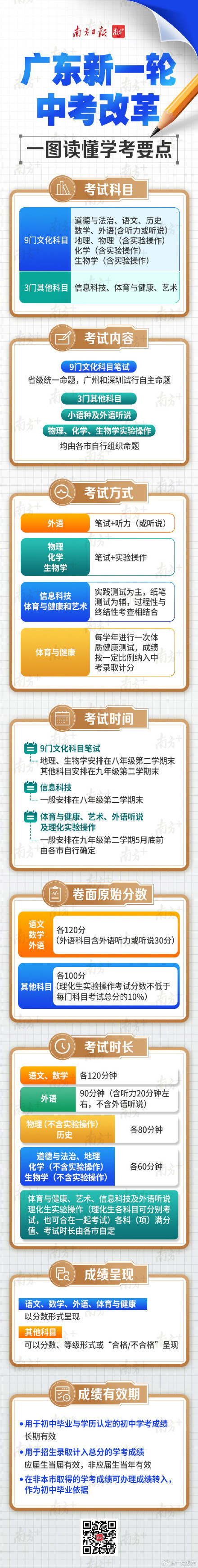 近日,广东省教育厅印发的《深化高中阶段学校考试招生制度改革实施意见》明确,自2023年9月1日起,道德与法治、语文、历史、数学、外语、地理、物理、化学、生物学9个科目笔试采取省级统一命题,广州和深圳2个副省级城市试行9个科目自主命题。