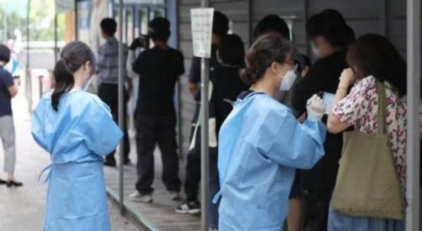 韩国民众排队接受核酸测试 图源:韩联社报道配图