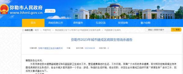 2023年8月28日,弥勒市发布了《弥勒市2023年城市建成区病媒生物消杀通告》《“清洁家园、除害防病”倡议书》,引起了网友的关注,现将有关情况通报如下: