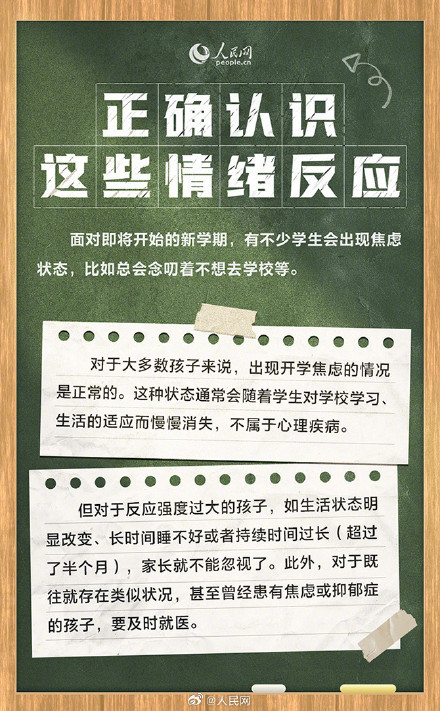 有的学生会出现紧张、焦虑,甚至提不起精神,学习态度消极等情况。对此,家长应该如何帮助他们调整心态,尽快适应新学期呢?(人民网记者孙红丽)