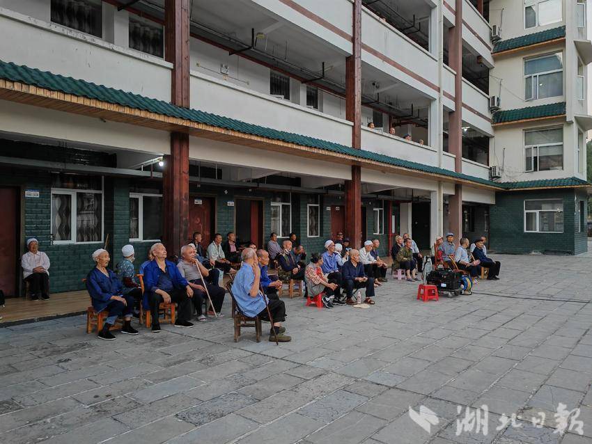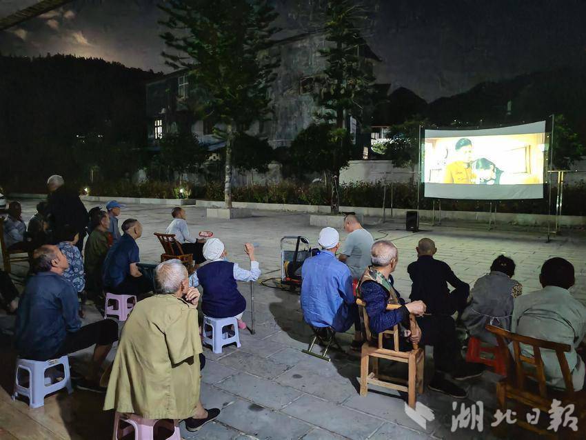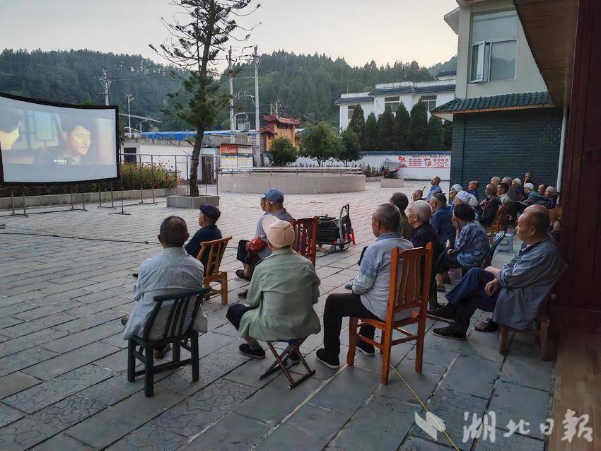 湖北日报客户端讯(通讯员廖永华、张继红)8月30日晚,夜幕降临,银屏亮起,在咸丰县朝阳寺镇农村福利院院内,老人们端坐在银幕前,聚精会神地观看播放的影片。