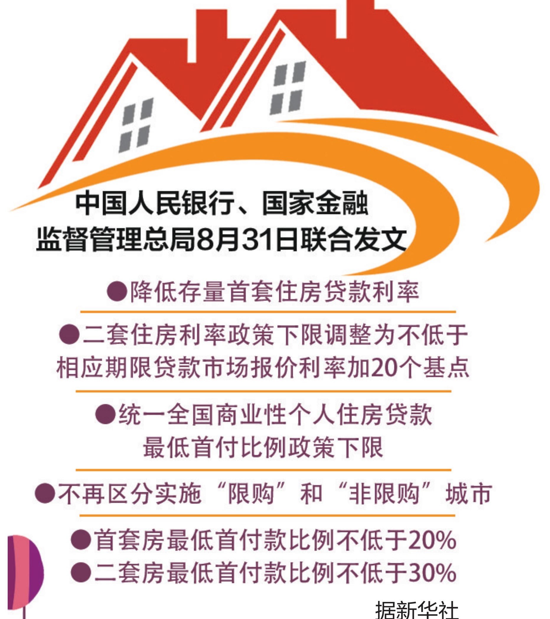 据央行网站消息 8月31日,中国人民银行、国家金融监督管理总局发布《关于调整优化差别化住房信贷政策的通知》《关于降低存量首套住房贷款利率有关事项的通知》。