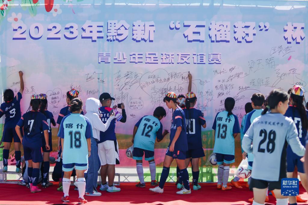 8月30日,2023年黔新“石榴籽”杯青少年足球友谊赛在新疆喀什落下帷幕。友谊赛活动为期两天,有来自贵州省黔西南布依族苗族自治州及新疆维吾尔自治区喀什地区、克孜勒苏柯尔克孜自治州(以下简称“克州”)的10支球队200余名青少年参赛。