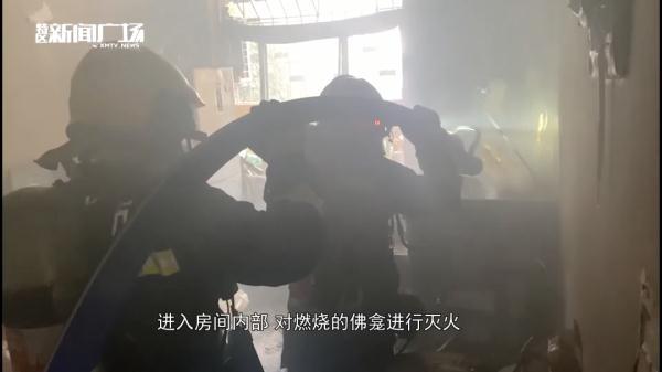 刚赶回家的施女士告诉记者,上午9点多,她出门时,没有将摆放在佛龛上的蜡烛熄灭,她怀疑就是烛火引燃了佛龛上的易燃物。