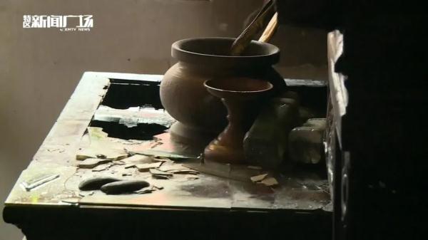 记者注意到,客厅窗户边摆放着一个佛龛,台面已经破损,下面堆积着大量灰烬。