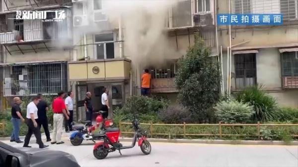通过市民拍摄的画面可以看到,浓烟正不断从这栋居民楼一楼的一个房间内往外冒,现场有人正隔着窗户,用灭火器向屋内喷射干粉灭火。