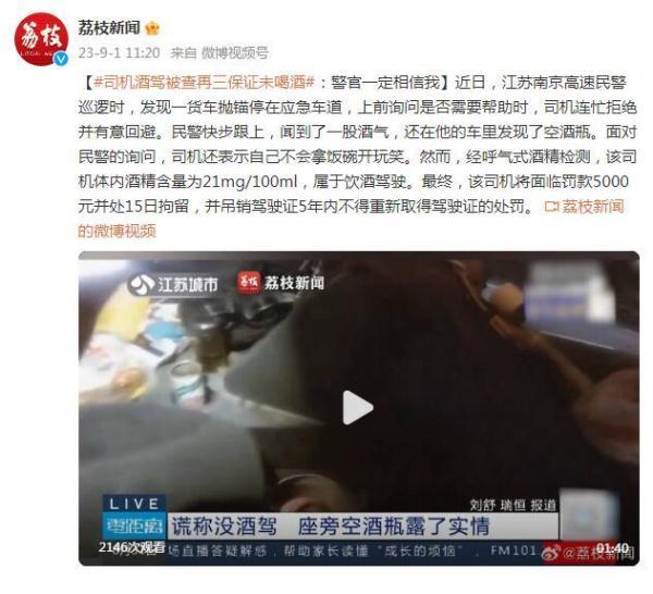 近日,江苏南京高速民警巡逻时,发现一货车抛锚停在应急车道,上前询问是否需要帮助时,司机连忙拒绝并有意回避。民警快步跟上,闻到了一股酒气,还在他的车里发现了空酒瓶。面对民警的询问,司机还表示自己不会拿饭碗开玩笑。然而,经呼气式酒精检测,该司机体内酒精含量为21mg/100ml,属于饮酒驾驶。最终,该司机将面临罚款5000元并处15日拘留,并吊销驾驶证5年内不得重新取得驾驶证的处罚。