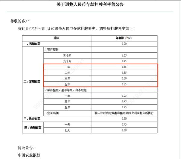 国有大行:1、2、3、5年定期分别下调