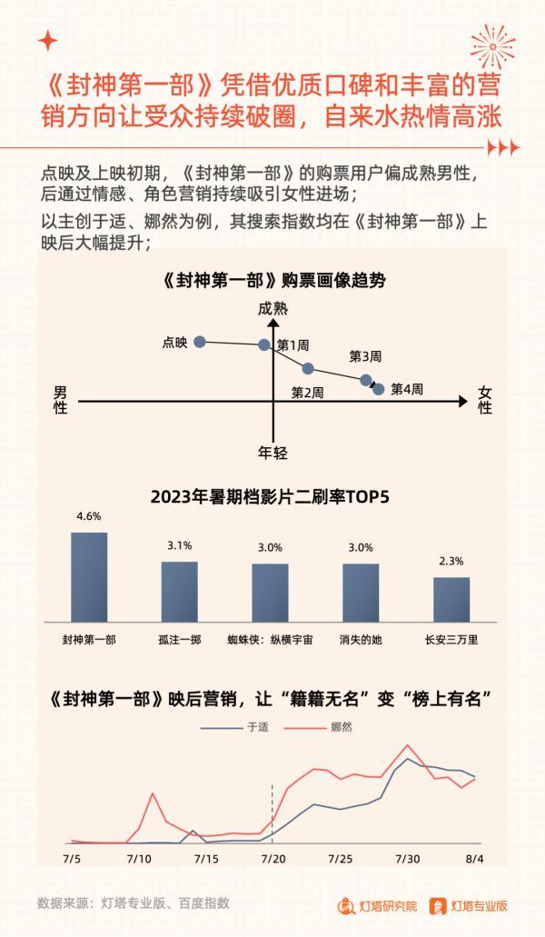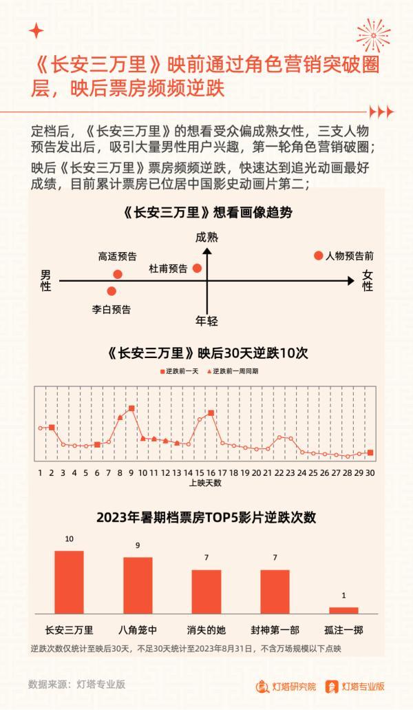 2023年9月1日,灯塔研究院联合新华网发布《长风破浪,势不可挡——2023年暑期档电影市场洞察报告》,从市场大盘、用户画像、竞争格局、重点影片、城市影院等五大维度进行复盘分析。