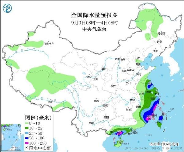 9月1日14时至2日14时,受“苏拉”影响,福建南部、广东东部和中南部等地部分地区有大到暴雨,其中,广东南部部分地区有大暴雨,沿海局地有特大暴雨(250~300毫米)。