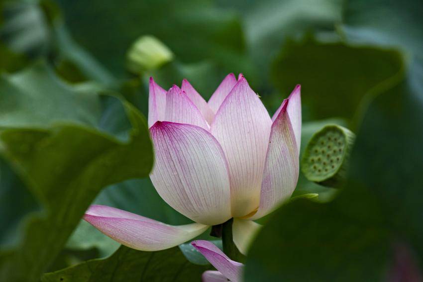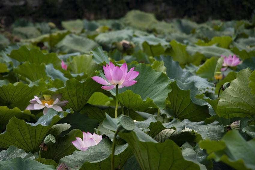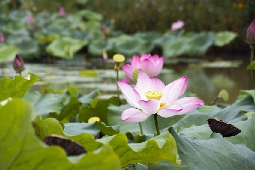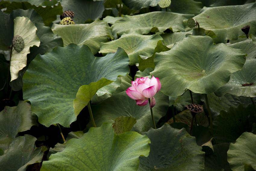 漫步在荷塘边,虽然九月的荷花已过盛开期,但每一朵花依然热烈而奔放,绿油油的莲蓬也探出了她的小脑袋,与艳丽的莲花相映成趣,勾画出一幅清新靓丽的图画。