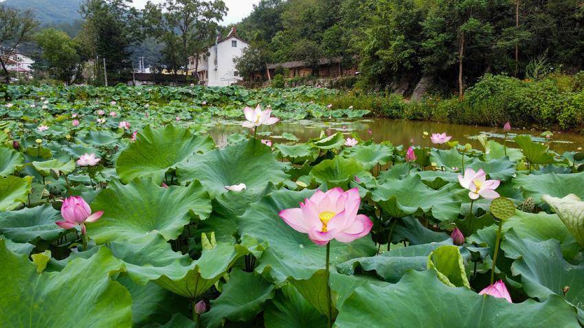 时至九月,南漳县肖堰镇观音堂村的荷花悄然绽放,粉色的花朵亭亭玉立,微风拂过,荷池泛起绿波,荷叶和花朵也轻轻地摇曳起来,送来阵阵清香。