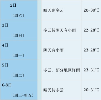 6-7日:江北晴天到多云,江南多云有时阴天。