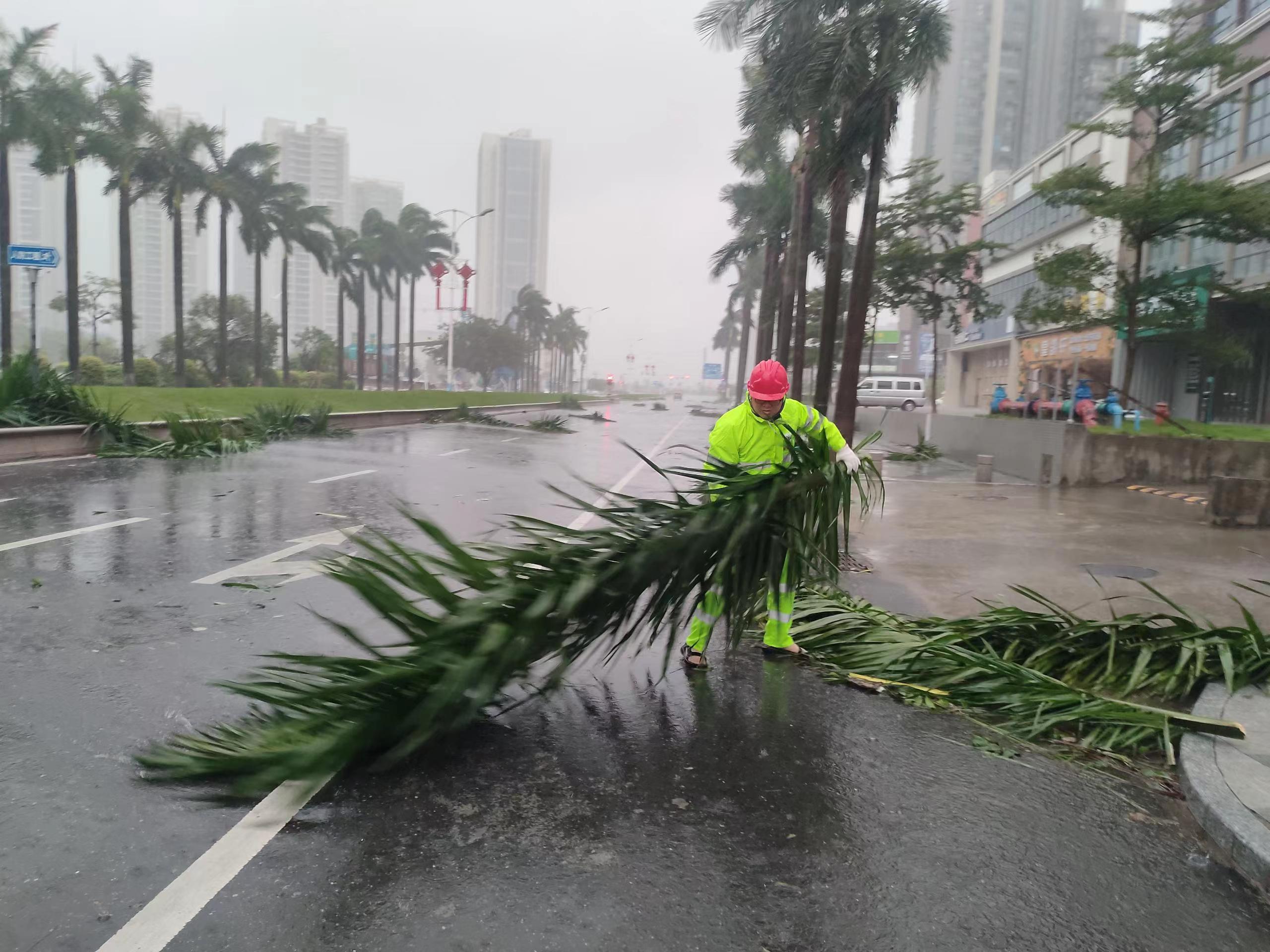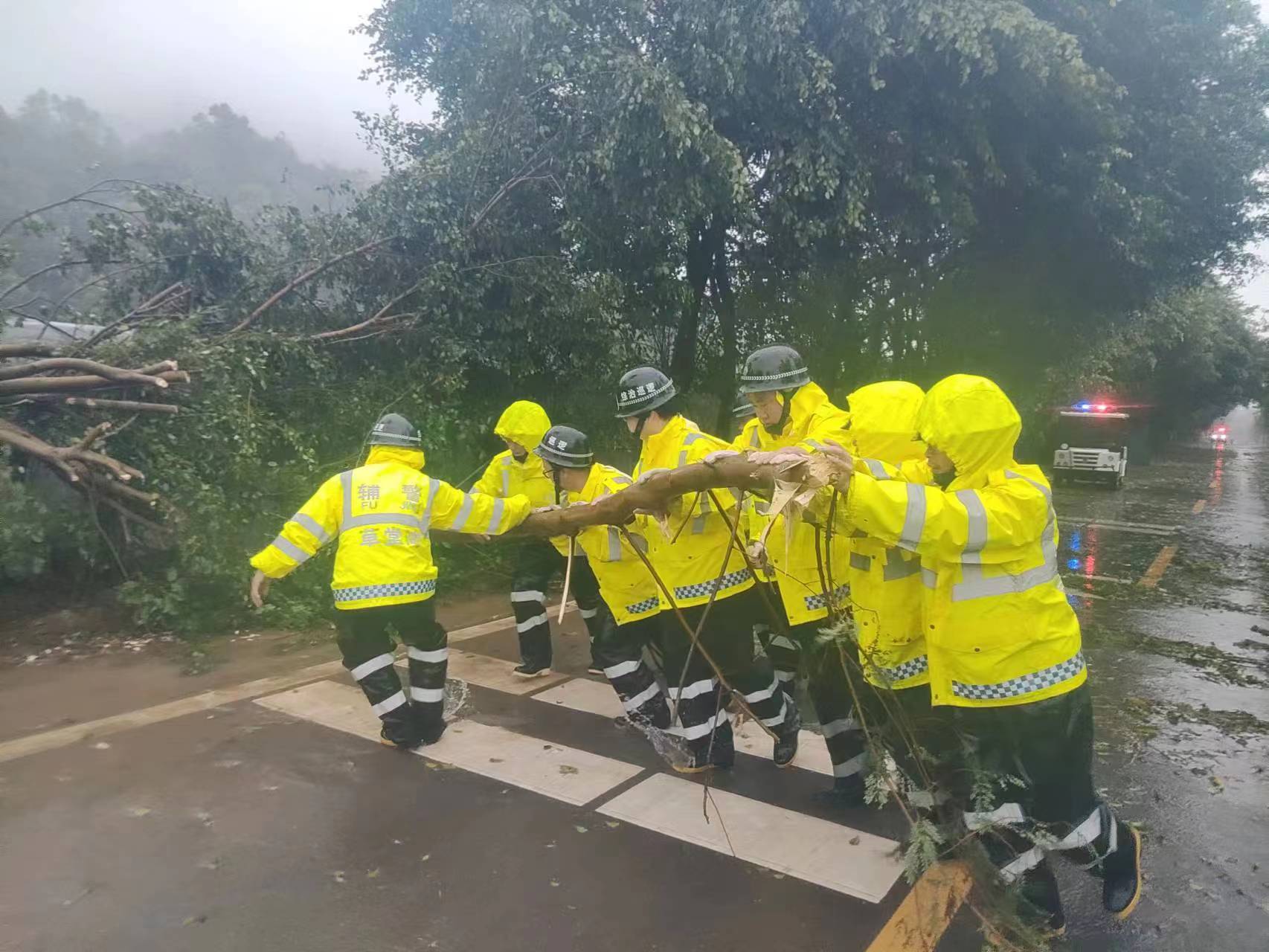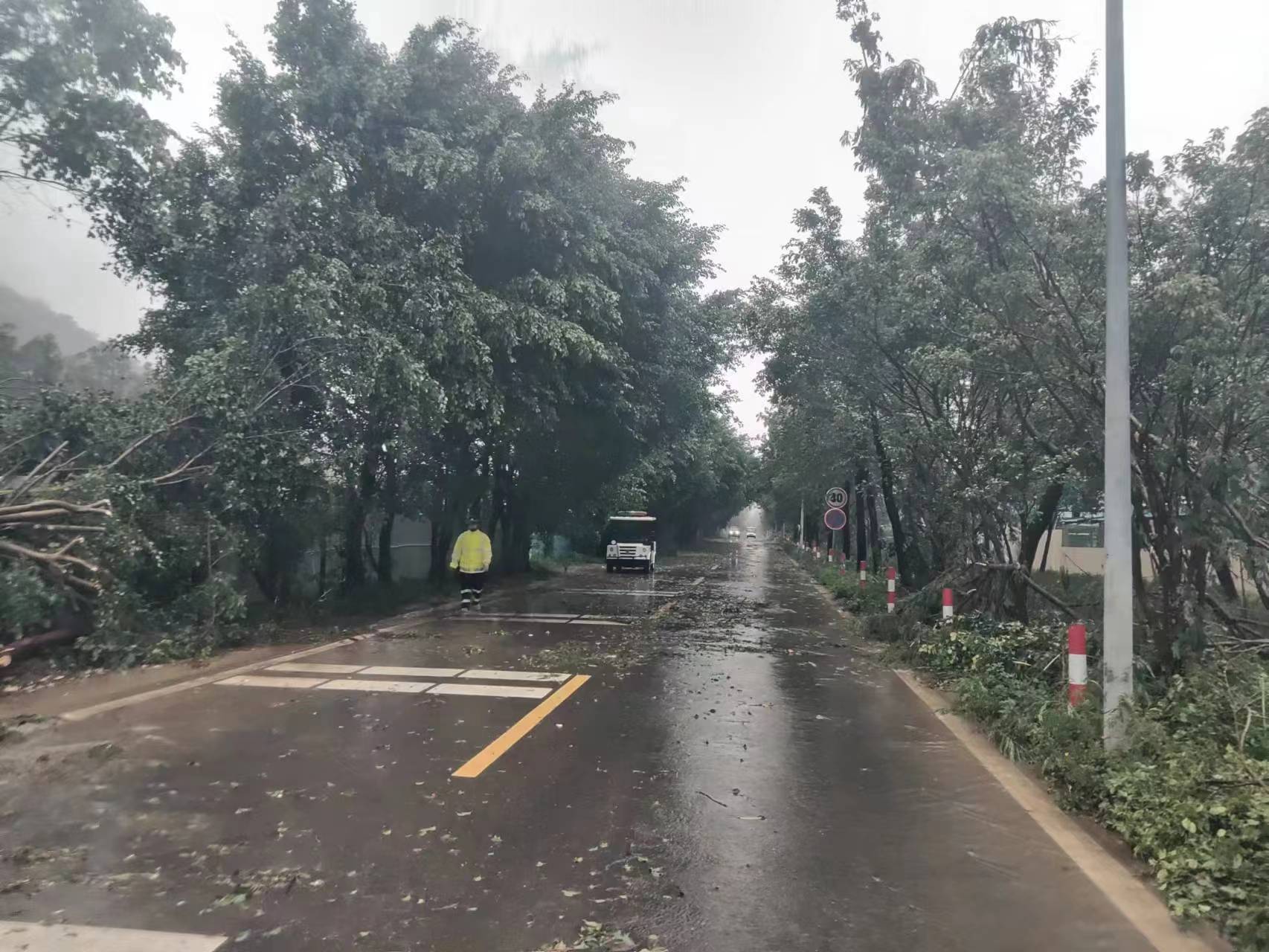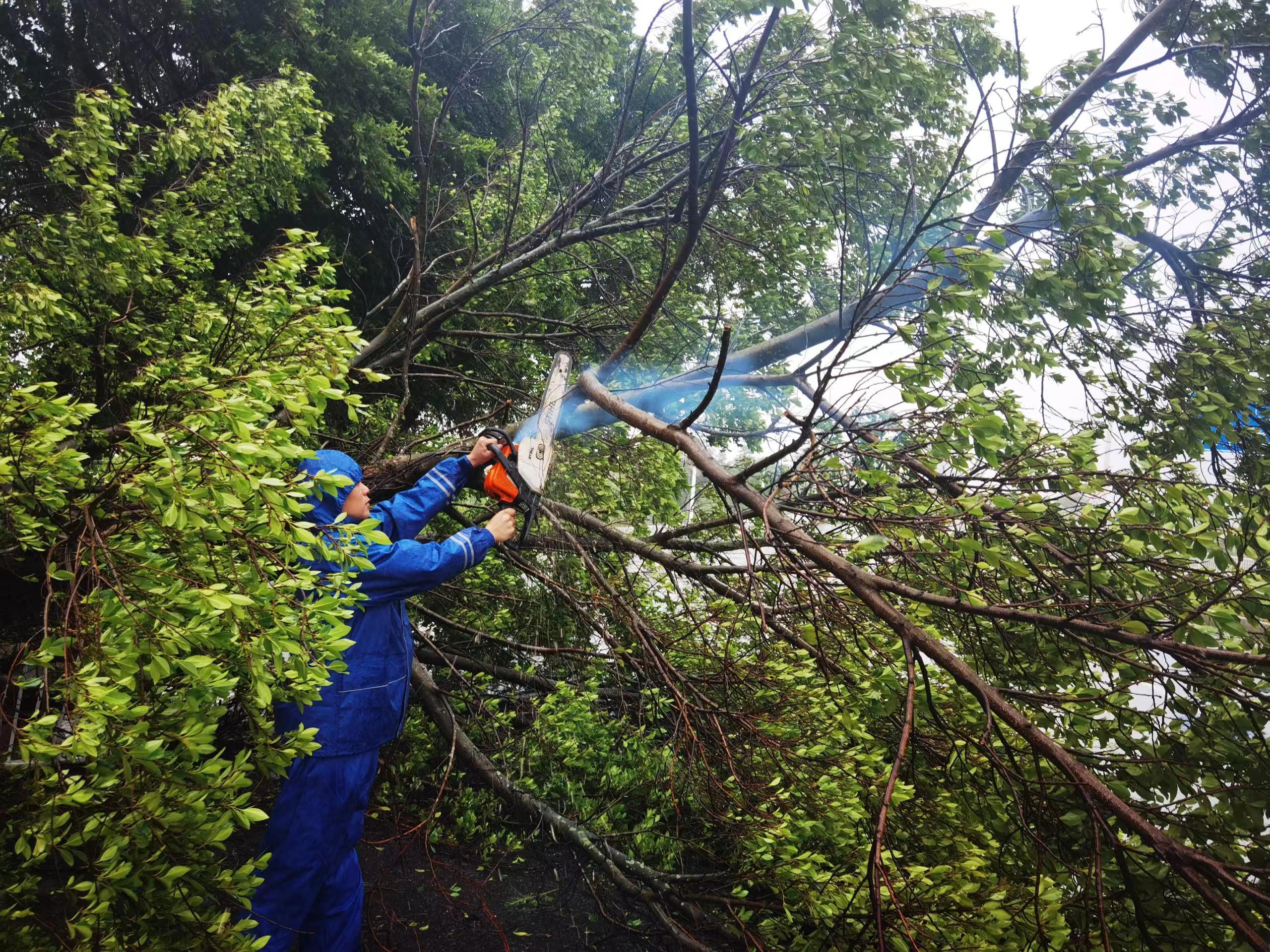 全力清理倒伏树木、枝叶等。