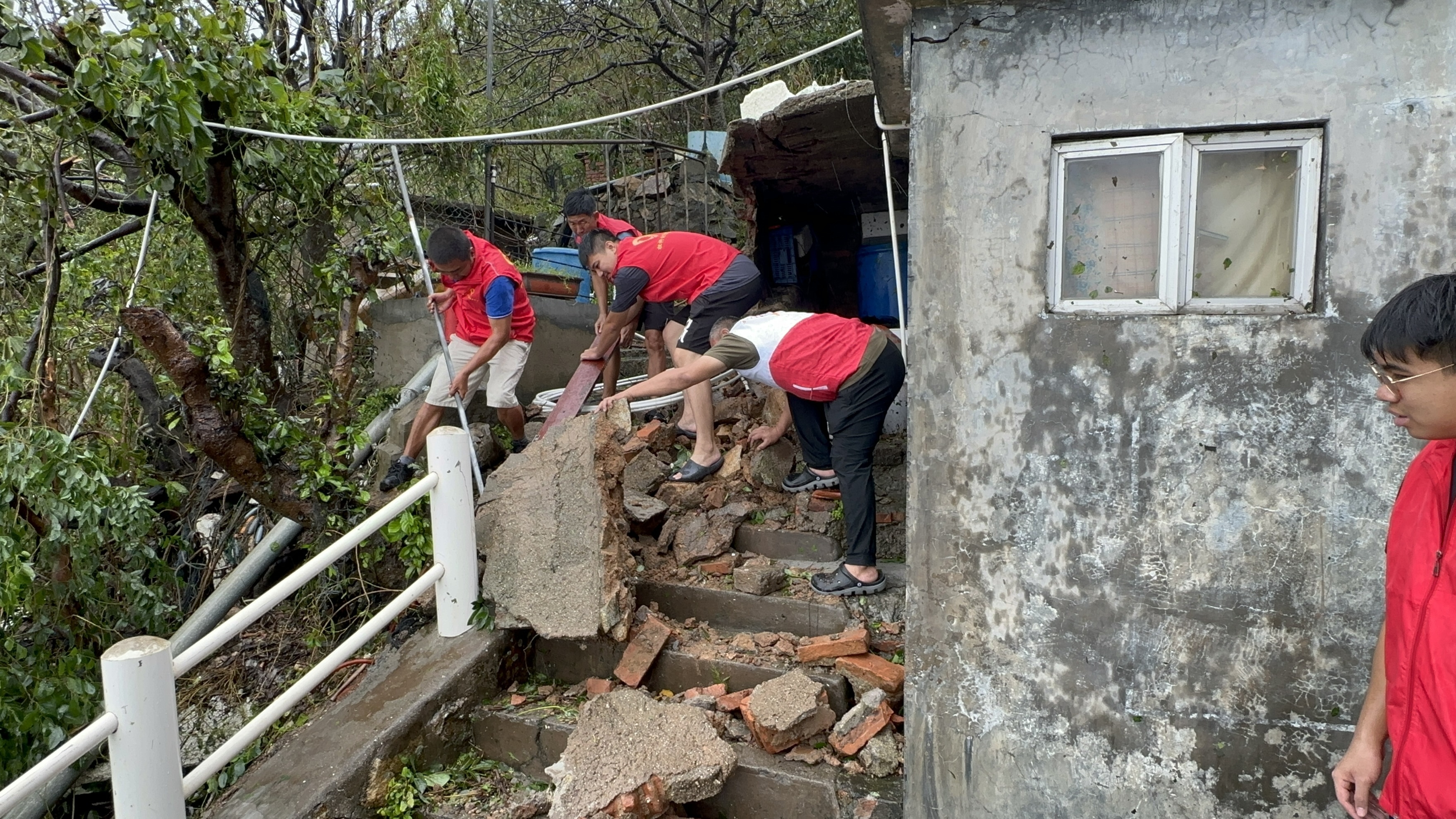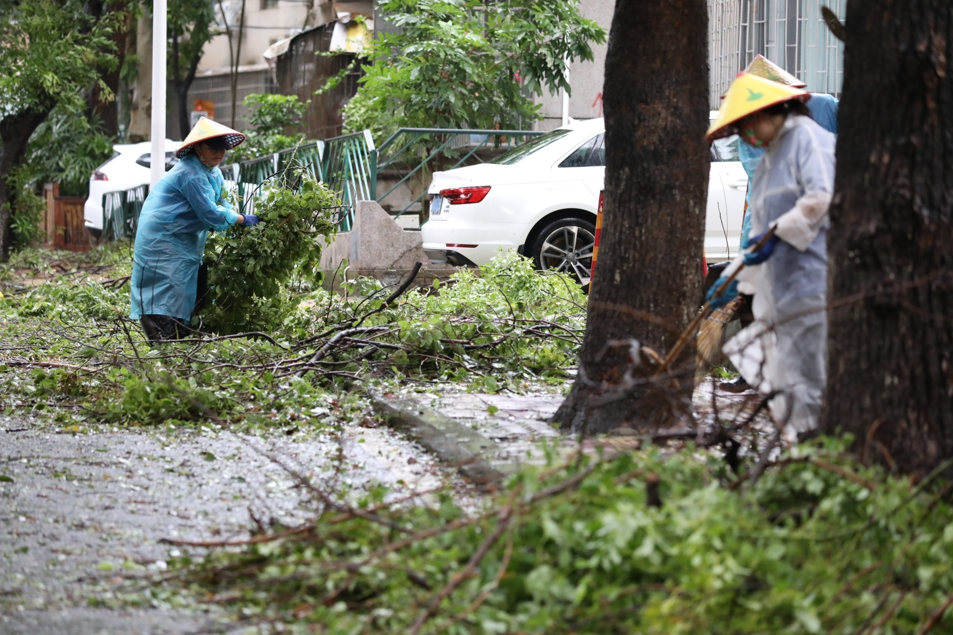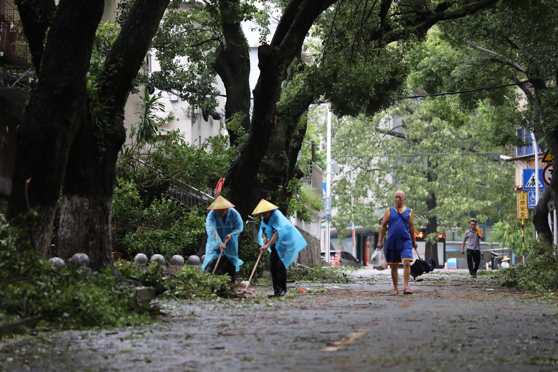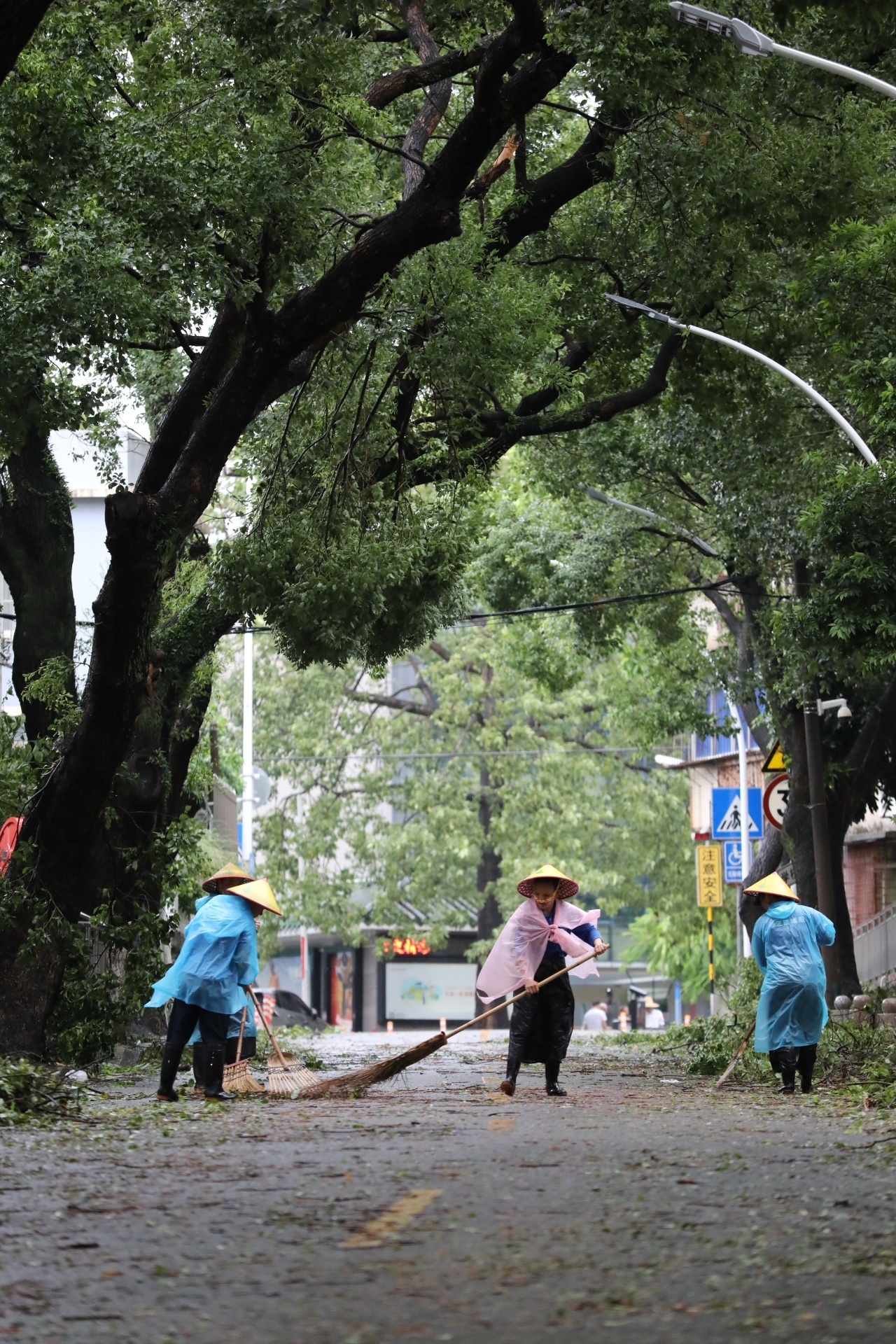 全力清理倒伏树木、枝叶等。