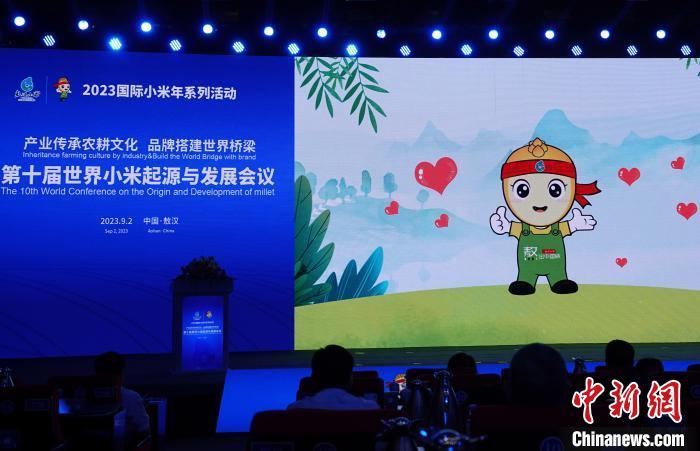 第十届世界小米起源与发展会议在敖汉举行,敖汉小米卡通形象“粟小贝”现场进行推介。中新网记者 孙自法 摄