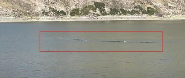 据视频拍摄者李女士介绍,她是从上海到新疆旅游的游客,8月31日下午4时许,她围着天池散步时,突然听到水中传来疑似鱼类在水中游动拍打水面的声音,她朝远处望去,发现在距离她约200米的湖水中,有一长条不明物体,“感觉可能有15米长。”
