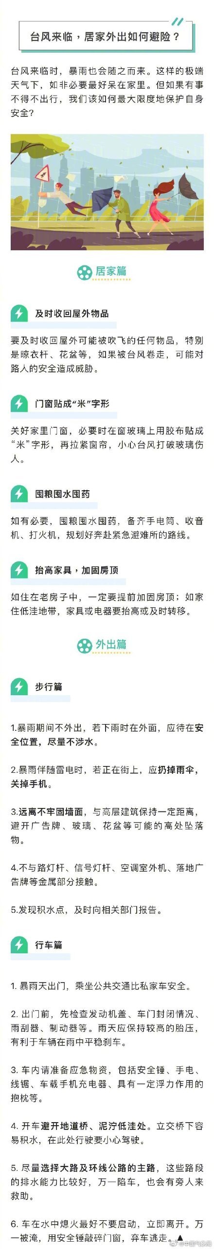 【台风来临,居家或外出都应注意这些】台风一个接一个那么在居家、外出行走、驾车等时候,我们都分别应该注意些什么呢?