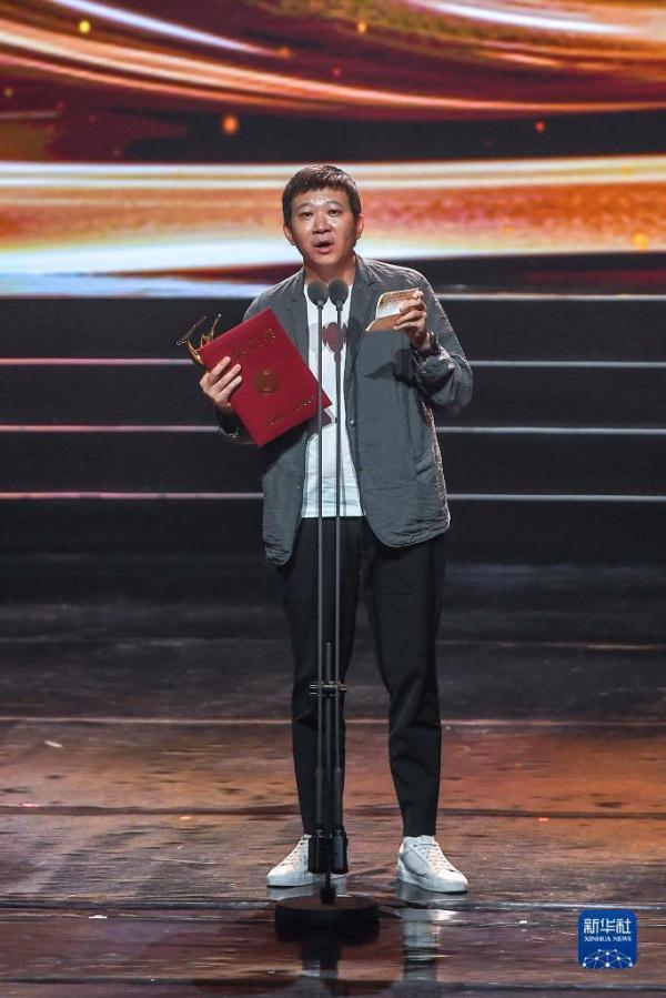 9月2日,导演饶晓志发表获奖感言,他凭借《万里归途》获金鹿奖最佳导演奖。新华社记者 张楠 摄
