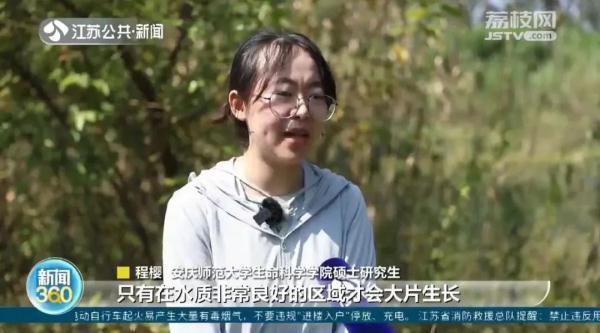 “只有在水质非常良好的区域才会大片生长。我们在长江中下游地区采样了很多地方,这是第一次见到这么大的群落,是非常震撼的。”庆师范大学生命科学学院硕士研究生程樱说。