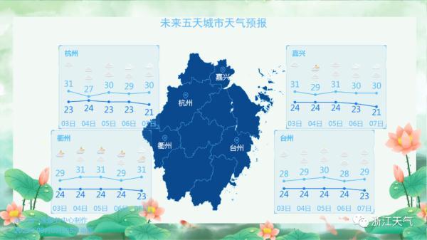 9月6-8日:浙南和沿海地区阴有阵雨或雷雨,其他地区多云到阴。