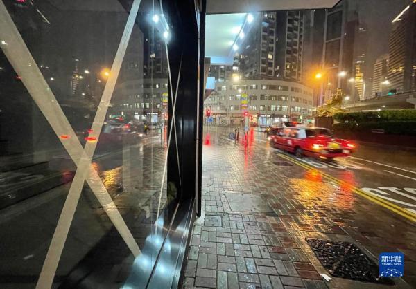 特区政府根据风险评估,针对易致灾点,协调有关部门和机构果断应对。相关部门提前将有水浸风险的自行车道、行人隧道等封闭。 图为9月1日,在香港街头,商家用胶带粘贴窗户,以防强风吹破 来源:新华社