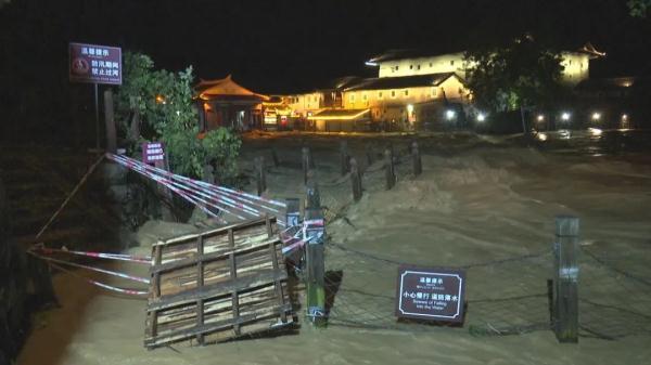 台风“苏拉”影响福建之前,来自漳州市南靖县气象局一则《重要天气预警报告》迅速传递至各相关部门及国家5A级景区土楼管委会,提示“8月31日至9月1日,全县有暴雨天气,累计雨量将达200-250毫米,局部超过280毫米”。当地防汛部门加强24小时值班制度,组织干部下沉一线对地灾点、低洼地带、高陡边坡、危房等地开展巡查,密切监控可能发生的险情,村干部挨家挨户上门提醒,村里大喇叭循环播放着台风预警信息。 图为9月1日20时,国家5A级景区土楼云水谣景区水位暴涨。文字/摄影 王秋云 刘美