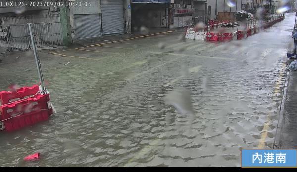 “苏拉”减弱程度较预期快且移速有所增快,以致风暴潮增水情况较预期减弱,并与天文大潮错峰,最终内港以南一带曾出现较轻微的风暴潮水浸。图为内港南9月2日日间水浸情况 来源:澳门地球物理暨气象局