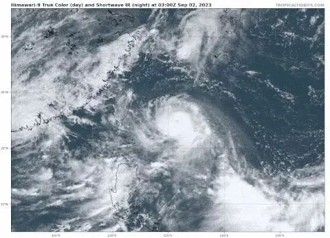 今年第11号台风“海葵”已于昨天(9月2日)夜间由台风级加强为强台风级,今天(3日)早晨5点钟其中心位于台湾省台东市东偏南方向约185公里的海面上,中心附近最大风力有14级(45米/秒)。