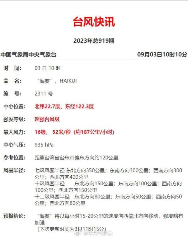 东边对“海葵”的预警已经拉开序幕