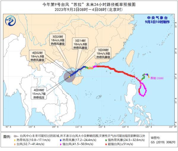 台风“苏拉”未来24小时路径概率预报图。图源中央气象台