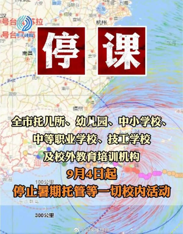 9月3日,据汕头市教育局消息,受台风“海葵”(超强台风级)影响,汕头全市托儿所、幼儿园、中小学校及校外教育培训机构9月4日起停课。
