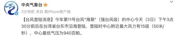 今年第11号台风“海葵”