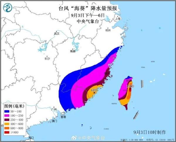 “海葵”或将二次登陆我国,带来持续性的风雨影响。受“海葵”影响,未来三天,台湾、浙江东部、福建大部、江西南部、湖南东南部等地将有大到暴雨,浙江东南部、福建东部和南部、江西南部、台湾中北部等地部分地区有大暴雨,福建东部、台湾中部等局地特大暴雨(累计降雨量250~300毫米,台湾中部局地可达600毫米以上)。