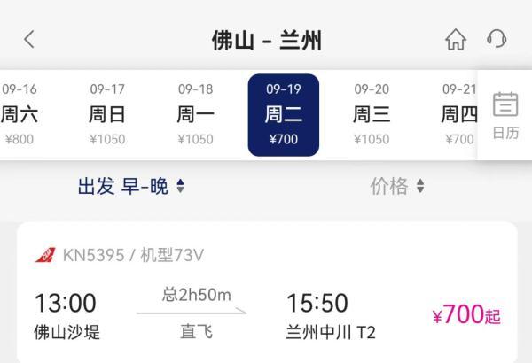 9月16日起,每周二、四、六,佛山往兰州方向13点00分起飞,15点50分抵达,兰州往佛山方向16点40分起飞,19点50分抵达。