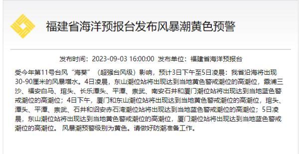 漳州市教育局发布最新通知受台风“海葵”影响漳州市继续推迟开学!