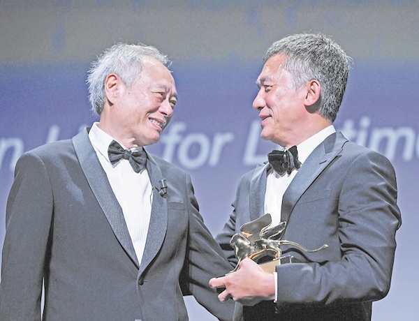北京时间9月2日晚,第80届威尼斯电影节为中国香港著名演员梁朝伟颁发终身成就金狮奖,国际著名导演、与梁朝伟私交甚笃的李安导演担任颁奖嘉宾。