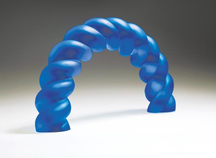 杜鹏的雕塑作品《思源》,用具象写实的手法塑造了一个呈沉思状婴儿的形象。作品在材料选择上进行了大胆的材质置换,把本是柔软的脐带和血脉用坚硬的、不同粗细的不锈钢条进行不断的敲打和焊接,编织成一个空灵的蛋型。脐带连接着生命的起源,既是对婴儿的保护,也是婴儿汲取营养以及跟外界联系的触角。作品借以婴儿沉思的方式为载体,表达人对自身的思考,以及人与自然和社会之间的关系,通过这些细微的元素有机结合在一起,来寻求人的本性及内在的生气,展现向上的、生生不息的生命的魅力。