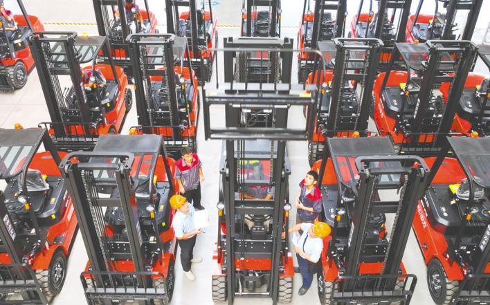 8月31日,湖北特种设备检验检测研究院襄阳分院业务人员来到位于老河口市的湖北中力机械有限公司总装车间,对22台蓄电池平衡重式叉车现场检验,为企业节约近两周检验时间。今年上半年,襄阳市直相关部门开展一线调研,走访企业6200余次,现场解决问题、解释政策1200余次。(视界网 王虎 摄)