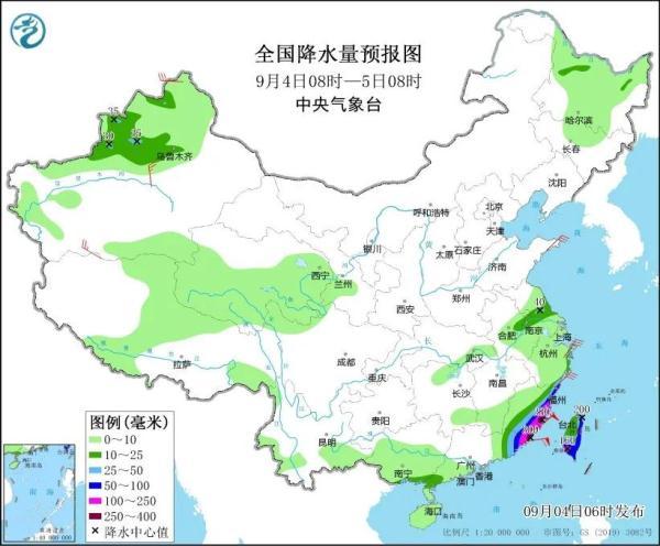 中央气象台9月4日6时继续发布暴雨黄色预警