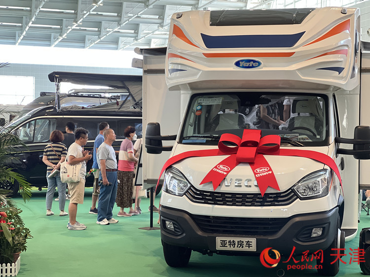 旅游装备展区的房车吸引观众排队体验。人民网记者孙翼飞摄