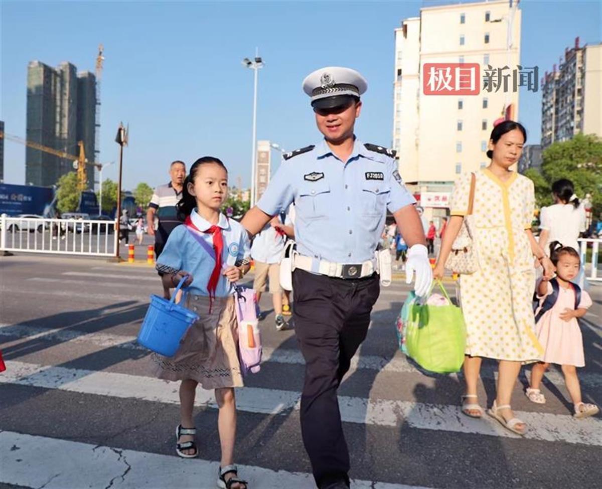 “请家长和同学们有序通过斑马线……”9月1日,秋季学期开学第一天,湖北荆门市沙洋县汉上实验学校门前车水马龙,民警、义工、志愿者组成综合护学岗,校园周边秩序井然有序。