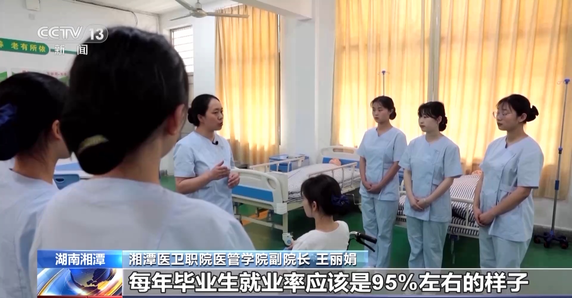 湘潭医卫职院医管学院副院长 王丽娟:目前我们学校每年招收养老专业的学生350人左右,每年毕业生就业率应该是95%左右,我们每一年向社会输送的养老人才达到300人。