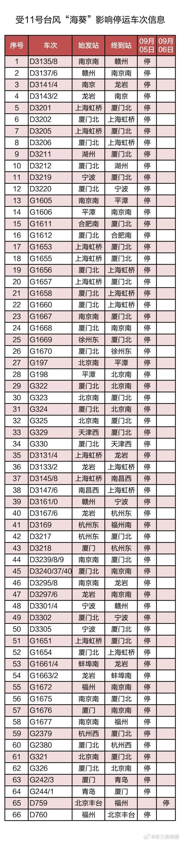 5日,国铁上海局对65趟旅客列车采取停运措施。