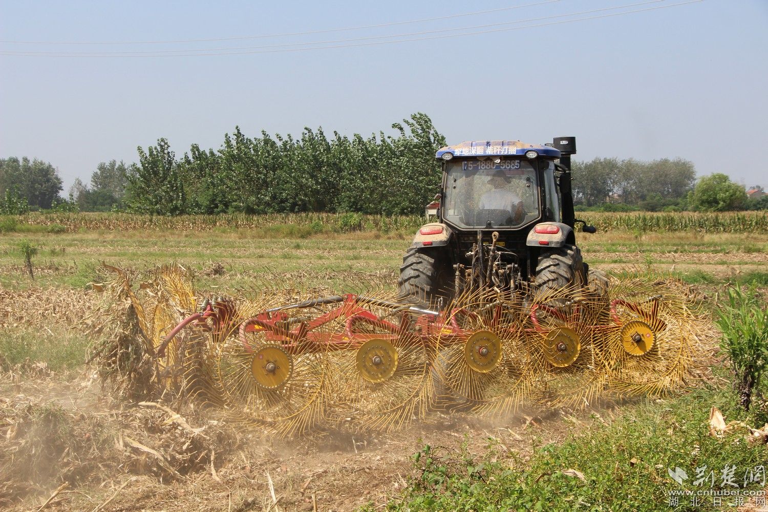 荆楚网(湖北日报网)讯 (通讯员陈保忠)9月5日,由云梦县城关镇引进的河南省驻马店市正阳县农民姚超群带领家人来到该镇睡虎地社区机械回收玉米、水稻秸秆。
