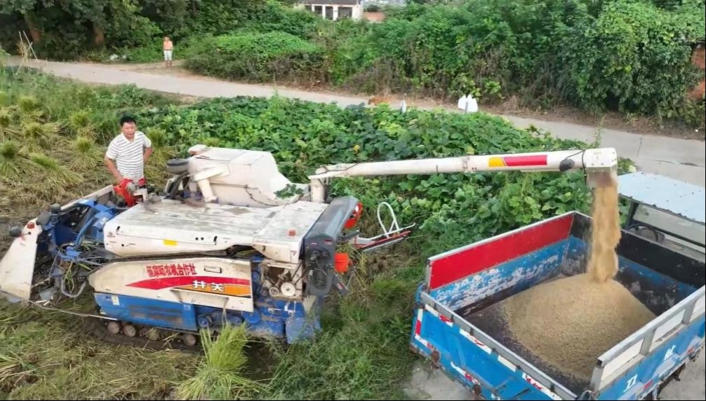 五家畈农机专业合作社负责人邹宏芹介绍,当前使用的收割机采用最新技术,具备多元绿色环保功能,一次性解决收割脱粒和秸秆打捆工作,改变了传统的先收割后秸秆垄收再进行捡拾打捆的费时费工、费油费钱的二次作业方式,既实现了节能减排又降低了农民的生产成本。其次收割和打捆一体完成,减少了多农机具多环节作业过程中对土地的压实次数,更有利于后期的深翻、整地作业和下一季的耕种。