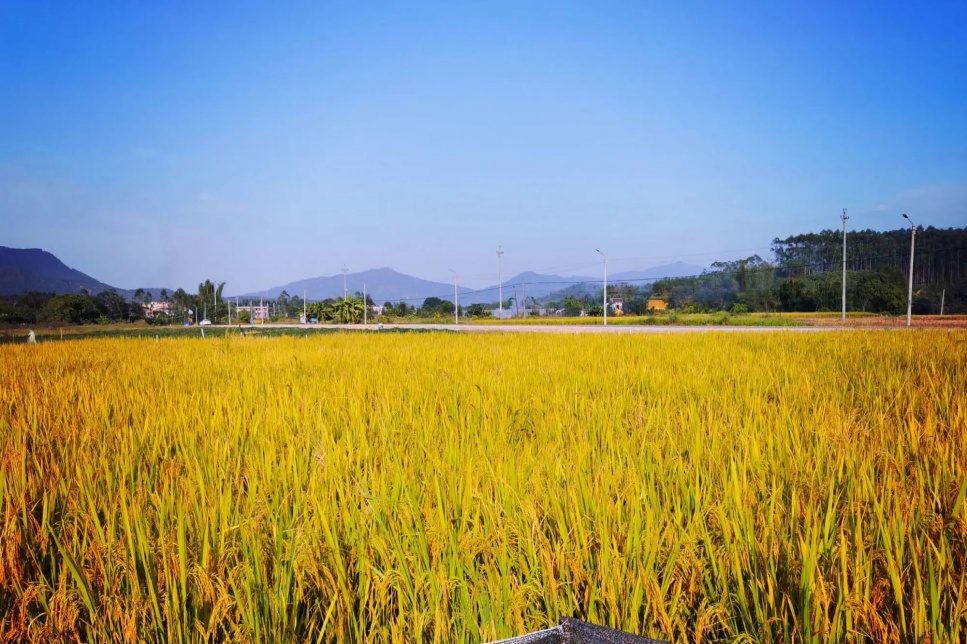 稻田里,一款新式收割机引人注目,机器在快速行进中实现一体化作业,不仅脱下谷粒入仓,而且将秸秆捆扎成草垛整齐摆放在田间,打捆好的稻草经回收可以养牛或覆盖柑橘越冬。