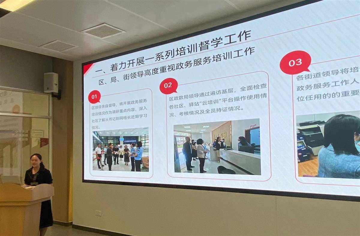 为进一步提升街道、社区基层政务服务承接能力和业务水平,2022年7月,汉阳区上线“云培训”,对基层窗口人员开展系统性、常态化业务培训。截至目前,全区1444名基层政务服务人员全员持证上岗。在市第五届劳动竞赛暨政务服务技能大赛中,汉阳区荣获团体一等奖和个人一、二等奖的优异成绩。