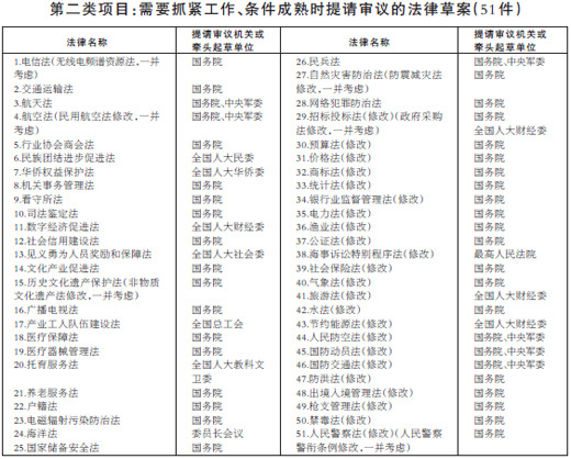 第三类项目:立法条件尚不完全具备、需要继续研究论证的立法项目