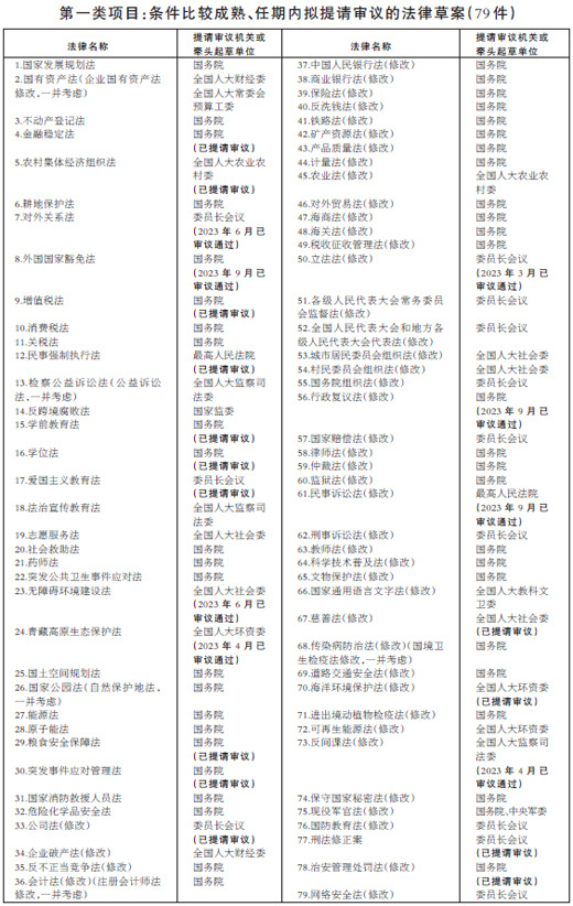 规范非税收入、政府债务、转移支付等财政税收制度,重要江河流域保护,应对气候变化和碳达峰碳中和,促进人口高质量发展,基本劳动标准和新就业形态,信访、矛盾纠纷多元化解,数据权属和网络治理等方面的立法项目,以及其他需要研究论证的修改法律的项目,经研究论证,条件成熟时,可以安排审议。